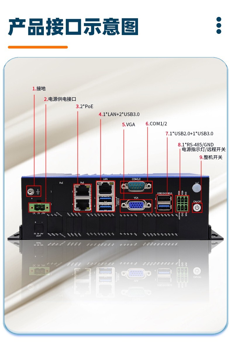 7. 2*RS-232(默認(rèn)1個),1*RS-485